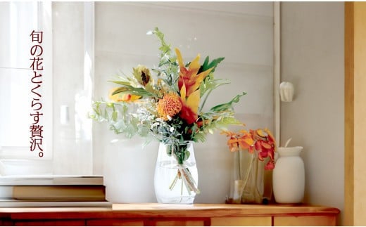 594.【月1回・12ヶ月定期便】旬とくらすお花の定期便 毎月届く季節のブーケ。旬を飾るゆたかな暮らし1年分をお届けします。