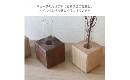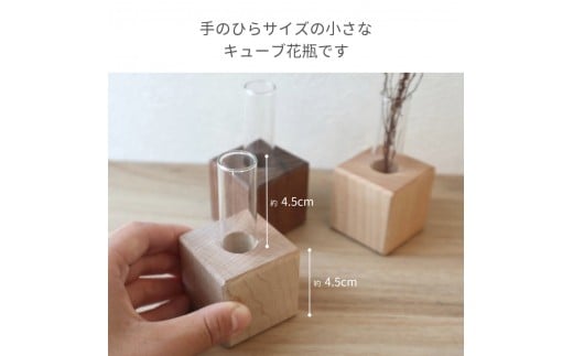 スクエアキューブ花瓶|無垢材使用の木製一輪挿し〈3点セット〉