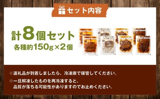 こだわり4種ハンバーグ 各約150g×2 計8個セット 冷凍 小分け トマトソース ホワイトソース ペッパーソース ブラウンシチューソース