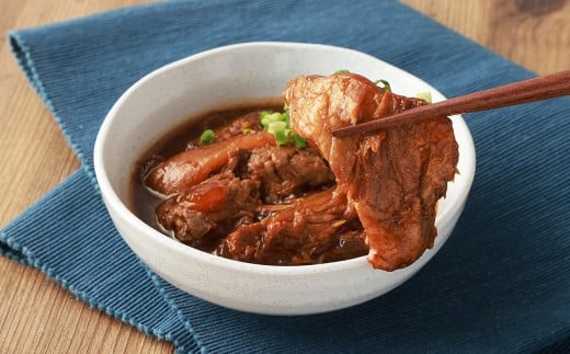 豚バラの軟骨をとろとろになるまで加熱し、甘辛いタレで仕上げました。