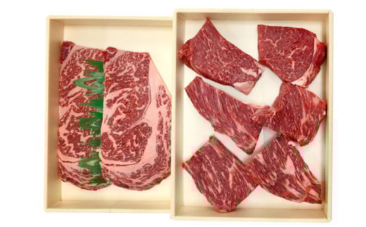 九州ファームの関門和牛を2種類のステーキ肉でお楽しみください。