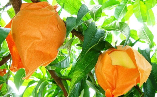 岡山県の桃は直射日光を当てない有袋栽培です。
