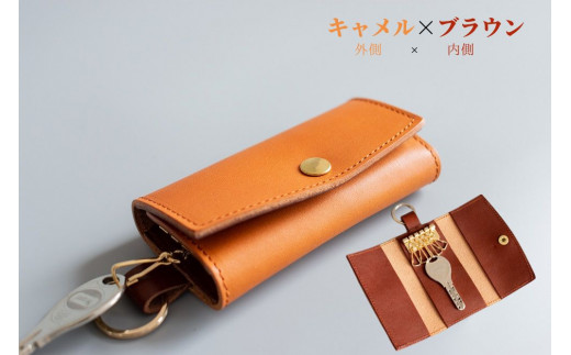 5連 キーケース キーリング 付き 栃木レザー 牛革 日本製 レザー 天然皮革 人気 実用的 車のキー ケース 鍵ケース ギフト 誕生日 プレゼント 還暦 両親 男性 女性 昇進 上司 レディース メンズ シンプル 使いやすい:キャメル×ブラウン