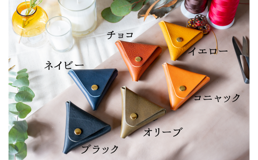 7. コインケース 小銭入れ 三角コインケース(イタリアレザー ネブラスカ):イエロー