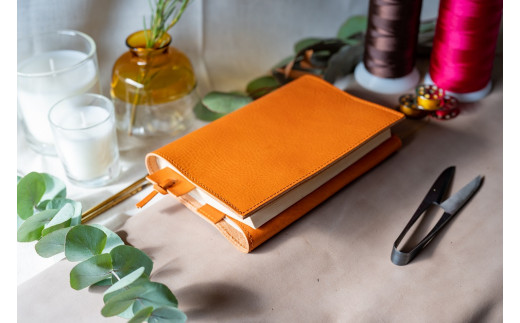 本革ブックカバー レザーブックカバー(栞付き)【A6判文庫本サイズ】(イタリアレザー ネブラスカ):コニャック