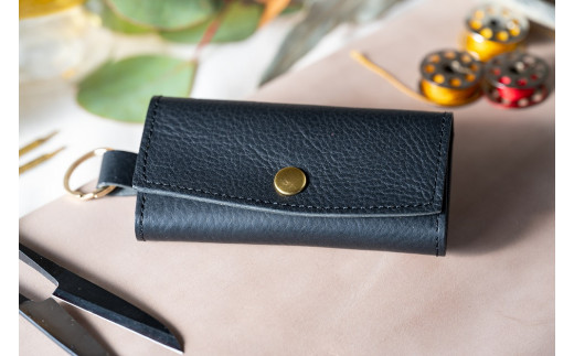 7. 5連キーケース【キーリング付き】(イタリアレザー ネブラスカ):ブラック