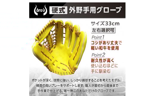 硬式 外野手 用 野球 グローブ 刺繍 入り(カラー オーダー ・ 刺繍 入り ) 【 吉川清商店 bro's 】 高校生 大人 成人 右投げ グラブ プレゼント 親子 メンズ レディース 右利き 革 贈答用 キャッチボール