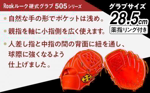 軟式グラブ 内野用 Rook 505シリーズ 野球 グローブ 内野手:Rオレンジ×Dブラウン 右投げ用