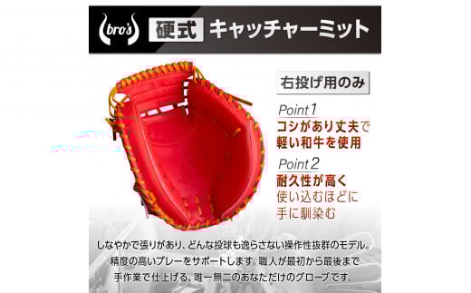 2色から選べる!硬式キャッチャーミット【吉川清商店 bro's】:赤オレンジ 通常ラベル
