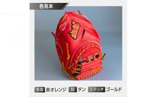 2色から選べる!硬式キャッチャーミット【吉川清商店 bro's】:赤オレンジ ふるさと納税限定ラベル