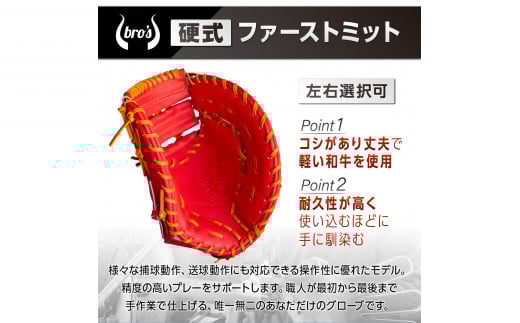 2色から選べる!硬式ファーストミット【吉川清商店 bro's】 右投げ用 左投げ用:赤オレンジ ふるさと納税限定ラベル 左投げ用