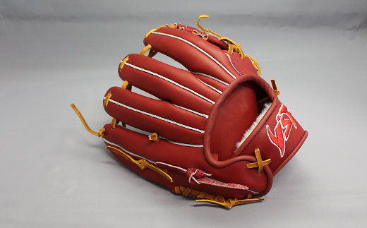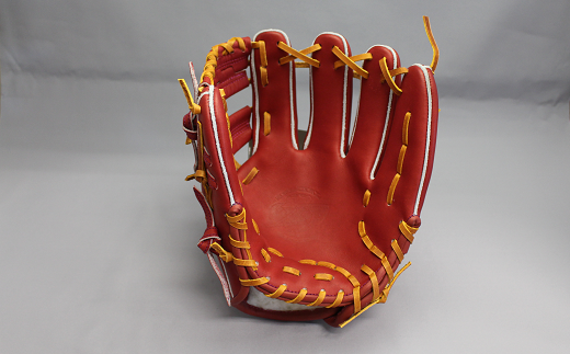 硬式セミオーダーグローブ(グラブ)(サード・ショート用)【野球工房iプラス】:本体カラー:赤オレンジ 紐カラー:タン 左投げ用