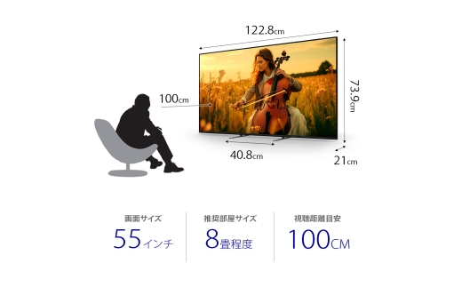 スタンドありの場合:幅122.8cm×高さ73.9cm×奥行21.0cm
