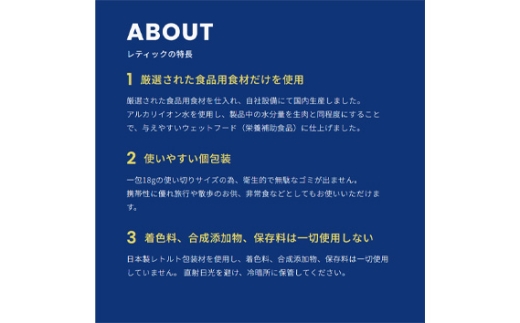 自社設備による国内生産。日本製レトルト包装材を使用しています。