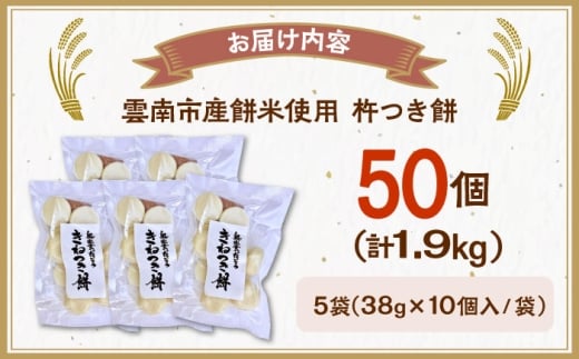 島根県雲南市産もち米を粘り強い餅に仕上げました。10個入りのお餅を5袋でお届けします。やや小ぶりサイズ感で、1度に食べきれないというあなたにちょうどいいサイズです。杵つき製法により搗きたてのお餅を味わえます。