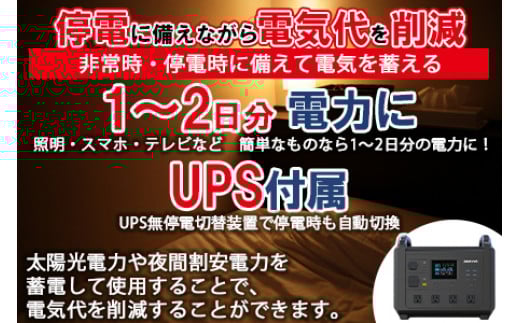停電に備えながら電気削減!1台で2台分はたらく大容量ポータブル電源!