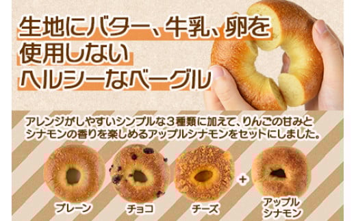 <ベーグル 4種セット 計13個>翌月末迄に順次出荷【 プレーン チョコ チーズ アップルシナモン ベーグルサンド パン 朝食 モーニング 昼食 ランチ サンドイッチ 食べ比べ 】