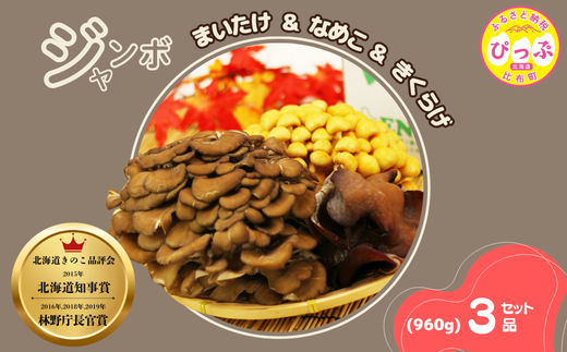 【きのこ品評会 最高賞受賞】ジャンボまいたけ・なめこ・きくらげ きのこ3品セット 計960g【遠藤農産】きのこ キノコ セット 詰め合わせ 舞茸 滑子 木耳 国産 北海道産 北海道 比布町 ぴっぷ 1002-002