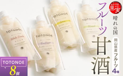 晴れの国フルーツ甘酒 TOTONOE 4種 8個(岡山白桃・岡山県産ニューピオーネ・岡山県産レモン・岡山県産マスカット)