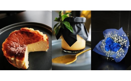 創業80年の老舗生花店が贈るバスクチーズケーキ&プリン&珠玉の花束セット