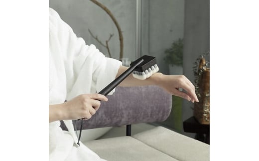2種類の毛質と長短の毛丈を組み合わせた2段階構造の穂先が、バランスのよい弾力性をもたらす熊野筆の新感覚・ボディブラシです。