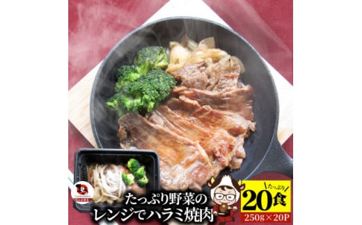 レンジで簡単ハラミ焼肉 250g×20食セット (総重量5kg)野菜入り| 牛肉 焼肉 野菜 ブロッコリー 玉ねぎ 柔らかい 味付き やきにく ハラミ 冷凍 香川県 三木町 国産 おすすめ |_mk146-239