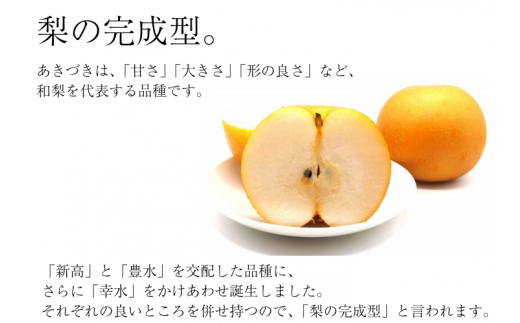 新高と豊水を交配した品種に、さらに幸水をかけあわせた「あきづき」。