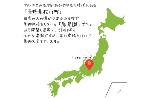 [備考] 【返礼品に関するお問い合わせ】 ・2025年6月2日以降のお申込みについて ■松川町ふるさと納税センター 電話:050-8888-9410 mail:matsukawa@frst-support.co.jp ・2025年6月1日までのお申込みについて ■一般社団法人 南信州まつかわ観光まちづくりセンター 電話:0265-48-5743 FAX:0265-48-5746 mail:furusato@matsukan.net 平日 9:00~17:00 ※12月27日正午~1月5日までふるさと納税に関するお問合せに対応できません。