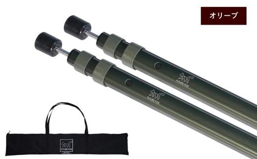 FUTURE FOX 伸縮ポール スクエア型 220㎝~280㎝ オリーブ // キャンプ アウトドア タープ用 テント用 ポール 調節可能 収納袋付き フューチャーフォックス