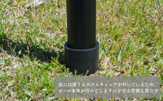 プッシュボタン式の伸縮ポールを使えば、誰でも簡単にタープを綺麗に貼る事ができます。