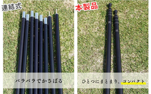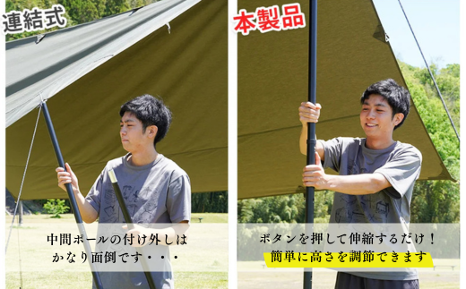 設営後でも簡単に長さ調節ができる伸縮ポール!