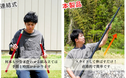 設営後でも簡単に長さ調節ができる伸縮ポール!