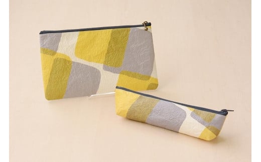 五箇山産和紙ポーチ・ペンケースセット(イエロー)