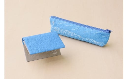 五箇山産和紙カードケース・ペンケースセット(タテヤマ/ブルー)