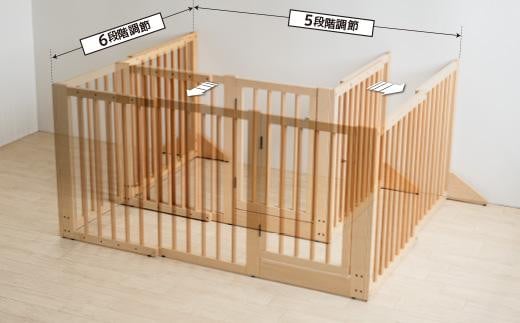 簡単設置 木製ペットゲート「コの字」両開き扉・伸縮NA