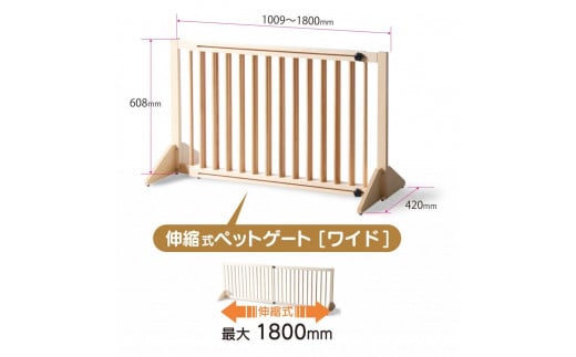 木製「伸縮式ペットゲート [ワイド]」 ナチュラル