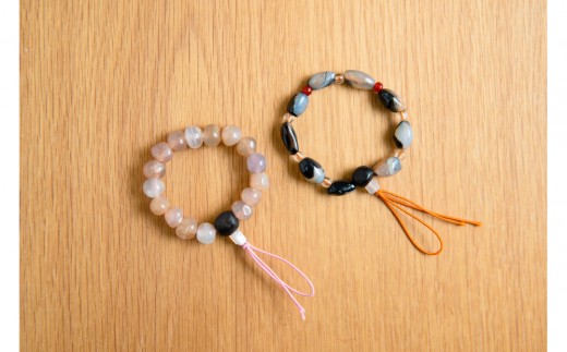 ・腕輪念珠は、無患子と石や木などの天然素材で作ります。