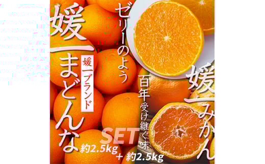 媛一みかん(約2.5kg、2S,3S,S)+媛一まどんな(約2.5kg、M,S,2Sサイズ)
