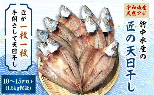 竹中水産の「匠の天日干し(宇和海産天然アジ)」10~15匹(1.5キロ保証)<D22-216>_ 鯵 あじ アジ 天日干し 干物 ひもの 天然 魚介 魚介類 海鮮 冷凍 愛媛 八幡浜 産直 産地直送 国産 おかず おつまみ 【1043160】