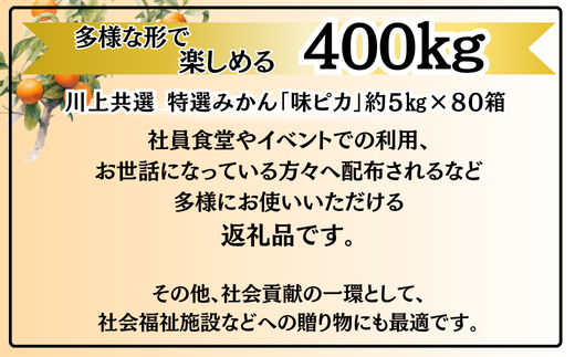 特選みかん「味ピカ」計400kg(約5kg×80箱)<H08-85>【1510465】