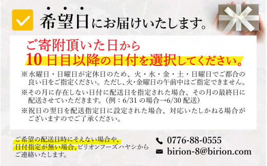 ※ご寄附いただいた日から10日目~2か月以内の配送希望日をご指定してください。