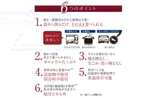 【塩干し×燻製】丸ごと骨まで食べられる焼き魚 3枚セット×2種 [A-088023_01_03]