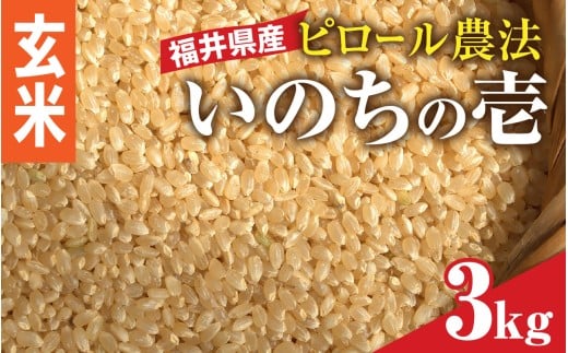 【玄米】【内田農園・ピロール米】令和7年産 福井県産いのちの壱 3kg 減農薬栽培 [A-168001_01]