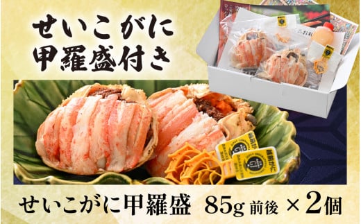 かにおせち(壱段重)と越前産せいこがに甲羅盛のセットです。