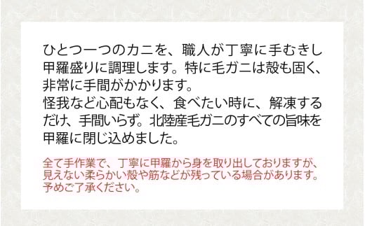 石川産オス毛ガニ甲羅盛(80g前後×1個)+ 石川産メス毛ガニ甲羅盛(80g前後×1個)合計2個 180g以上