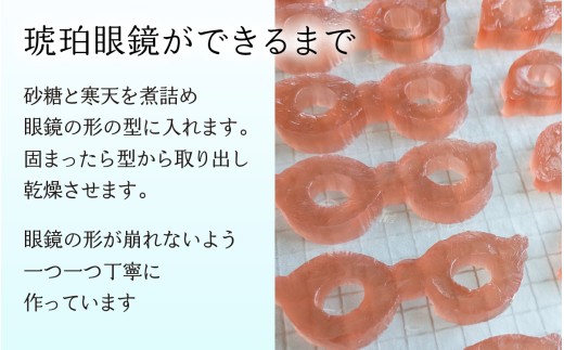眼鏡型で色とりどりの琥珀糖。シャリシャリ感が楽しくフルーツの味わいも楽しめます。
