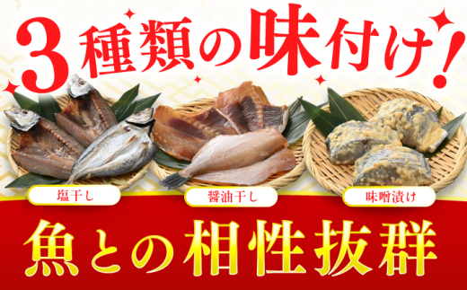 塩干し、醤油干し、味噌漬け×各1種類(合計900g以上)(魚種3~4種ほど)