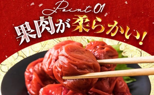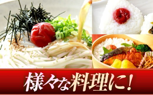 色鮮やかな「ちそ」(赤紫蘇)の葉と塩だけを使って漬け込んだ、昔ながらの梅干しです