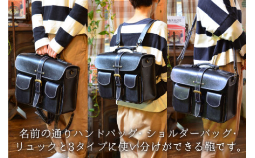 職人の手縫いによる3通りの使い方ができるバッグです。