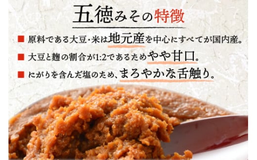 五徳みそは、地元産大豆・米を基本原材料とした風味豊かな味噌です。